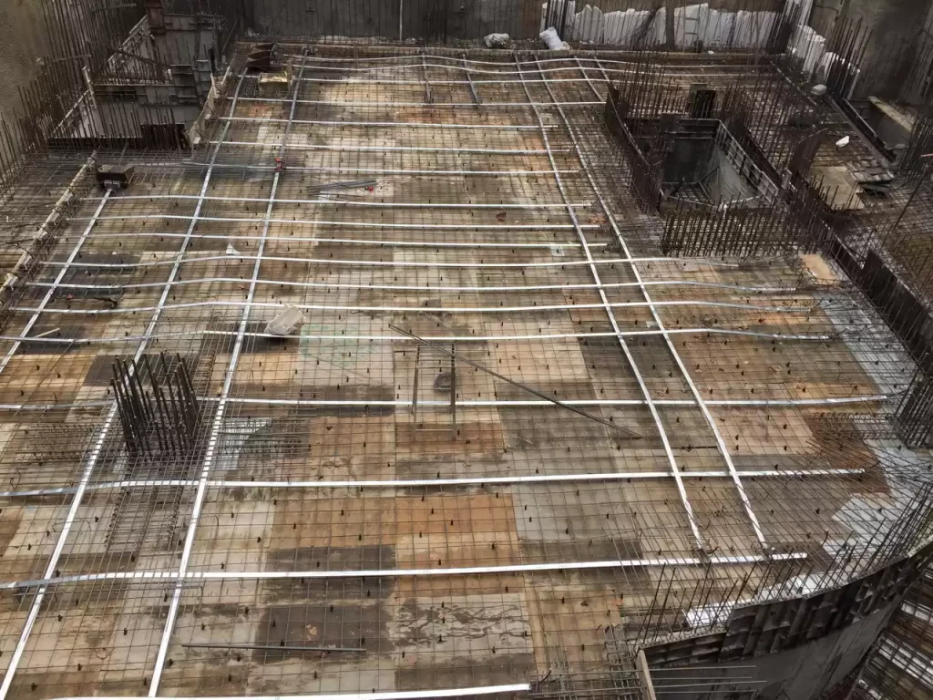 Steel reinforcing bars “rebar” are typically embedded in the concrete as tensile reinforcement to limit the crack widths. Rebar is what is called “passive” reinforcement, however it does not carry any force until the concrete has already deflected enough to crack. Post-tensioning tendons on the other hand are considered “active” reinforcing. Because it is Prestressed, the steel is effective as reinforcement even though the concrete may not be cracked. Post-tensioned structures can be designed to have minimal deflection and cracking, even under full load and cracking, even under full load.